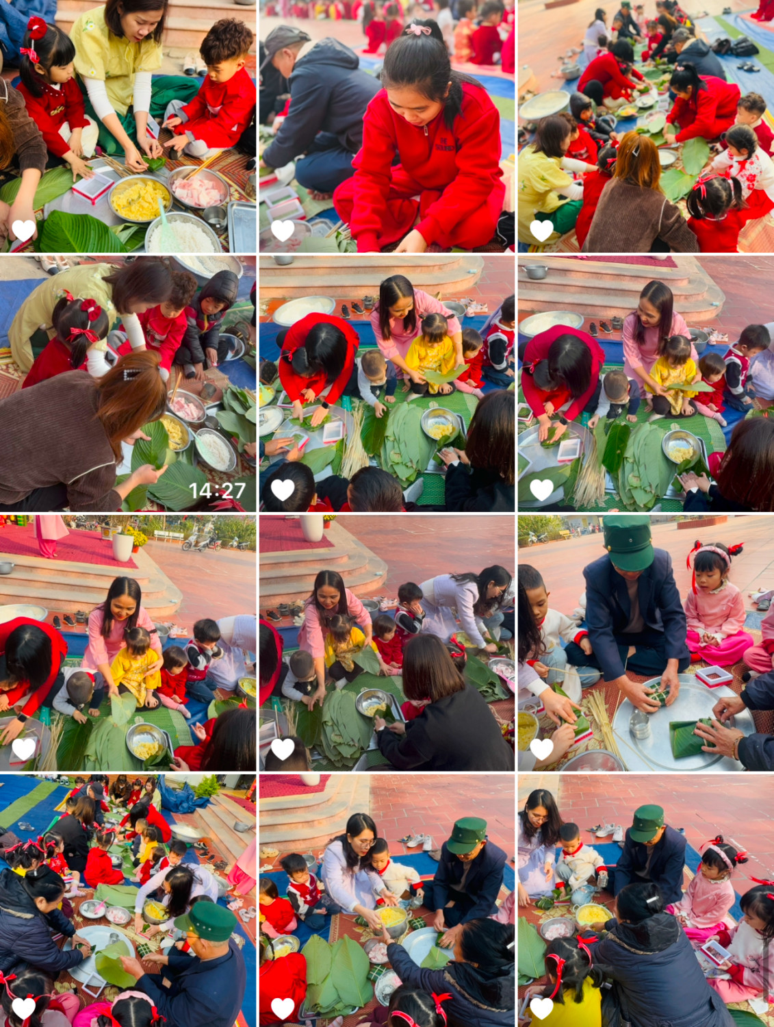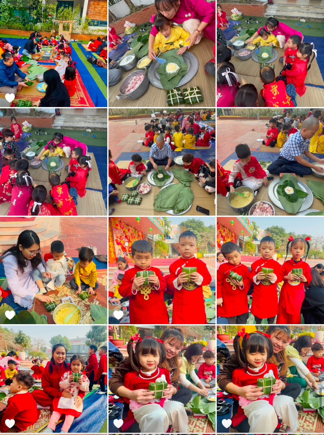 Dưới đây là một số hình ảnh của hoạt động thi gói bánh trưng của giáo viên, phụ huynh và học sinh trường mầm non Dân Hoà