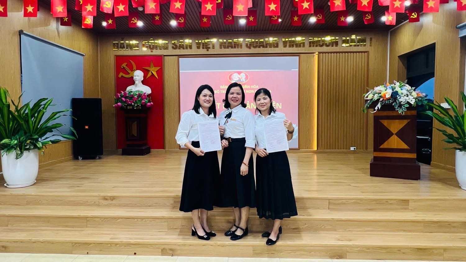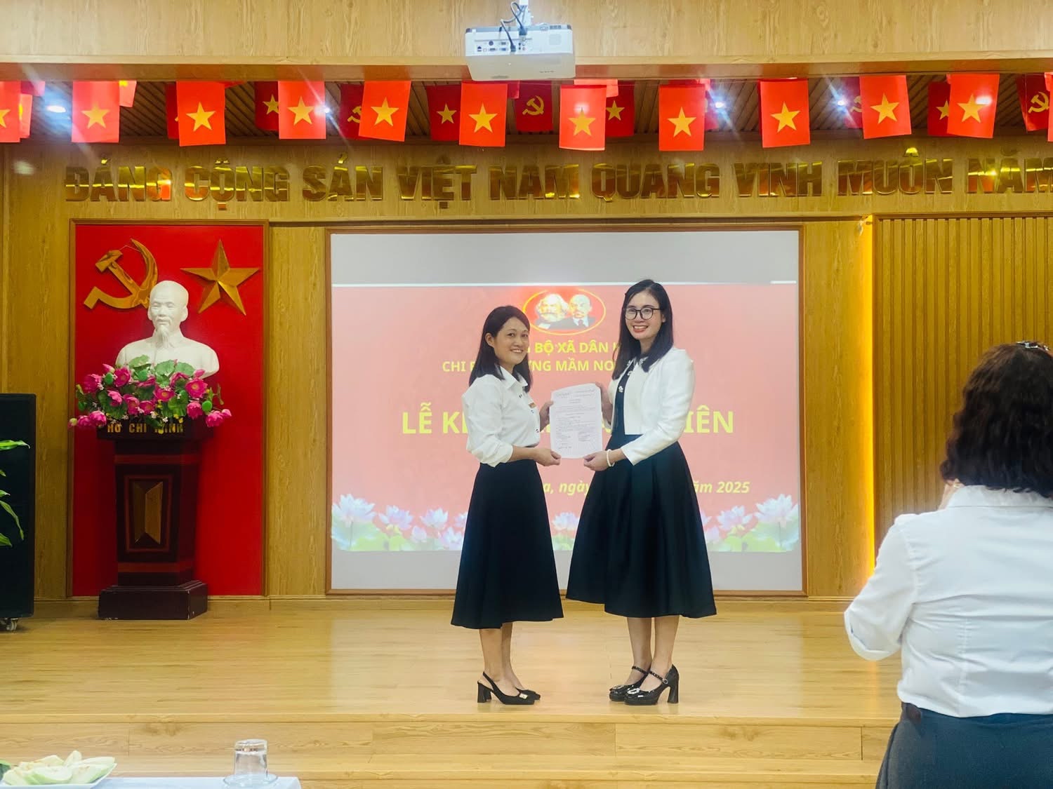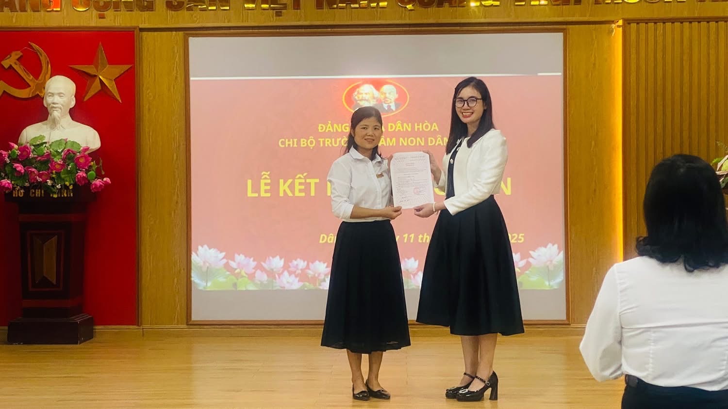 CHI BỘ TRƯỜNG MẦM NON DÂN HÒA TỔ CHỨC LỄ KẾT NẠP ĐẢNG VIÊN 2 ĐỒNG CHÍ TRẦN TUYẾN VÀ MAI THỊ THẢO.