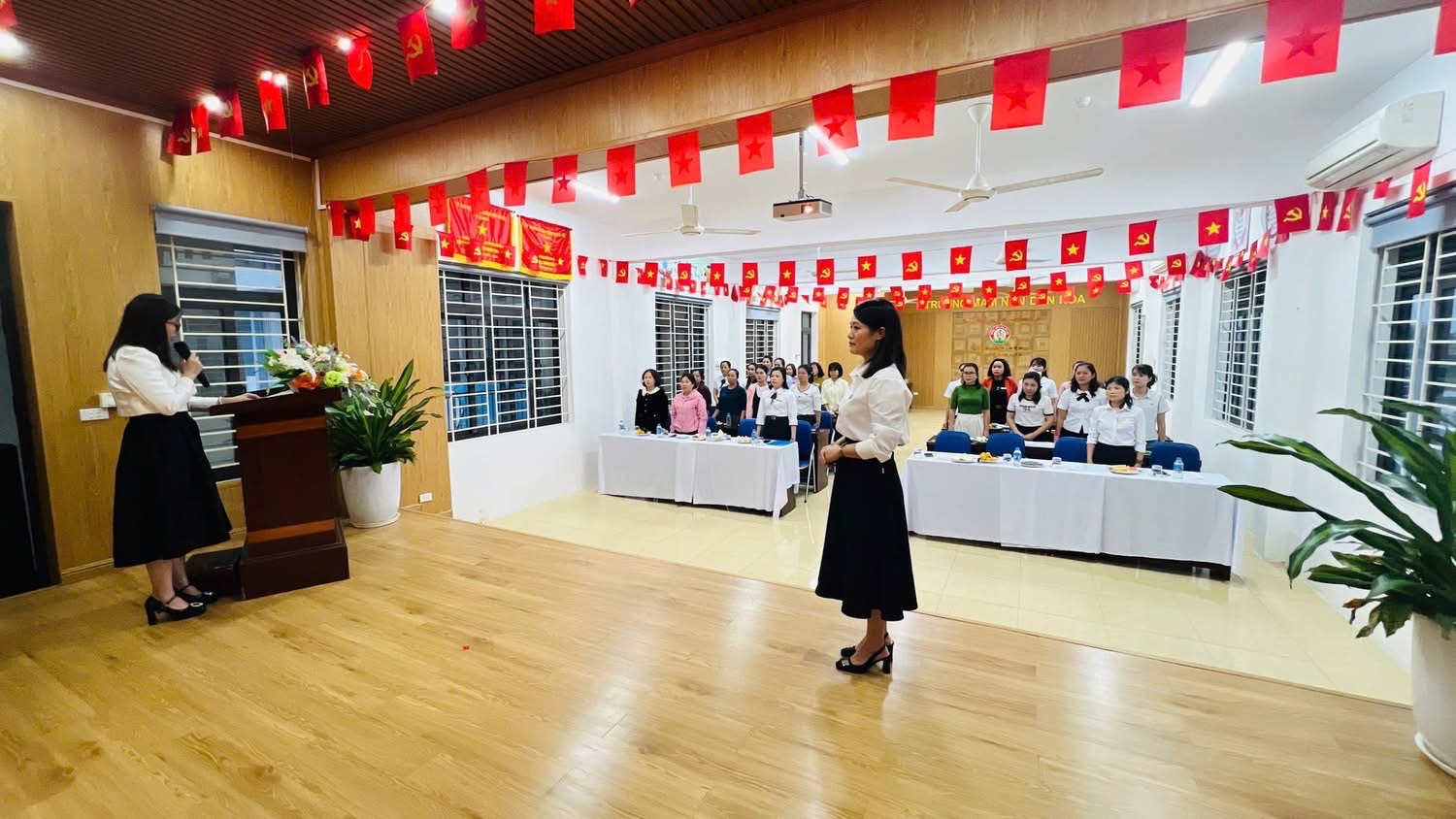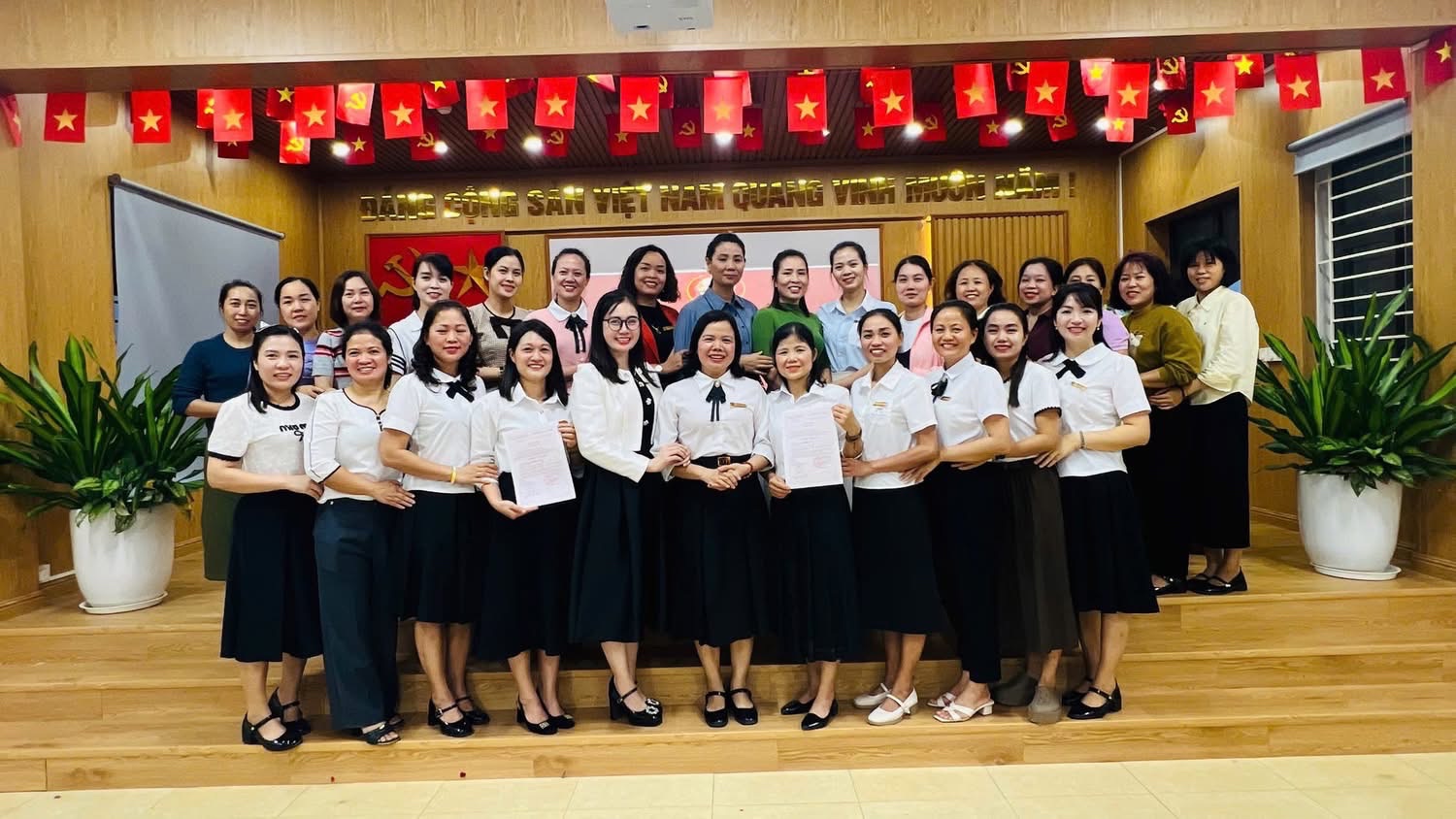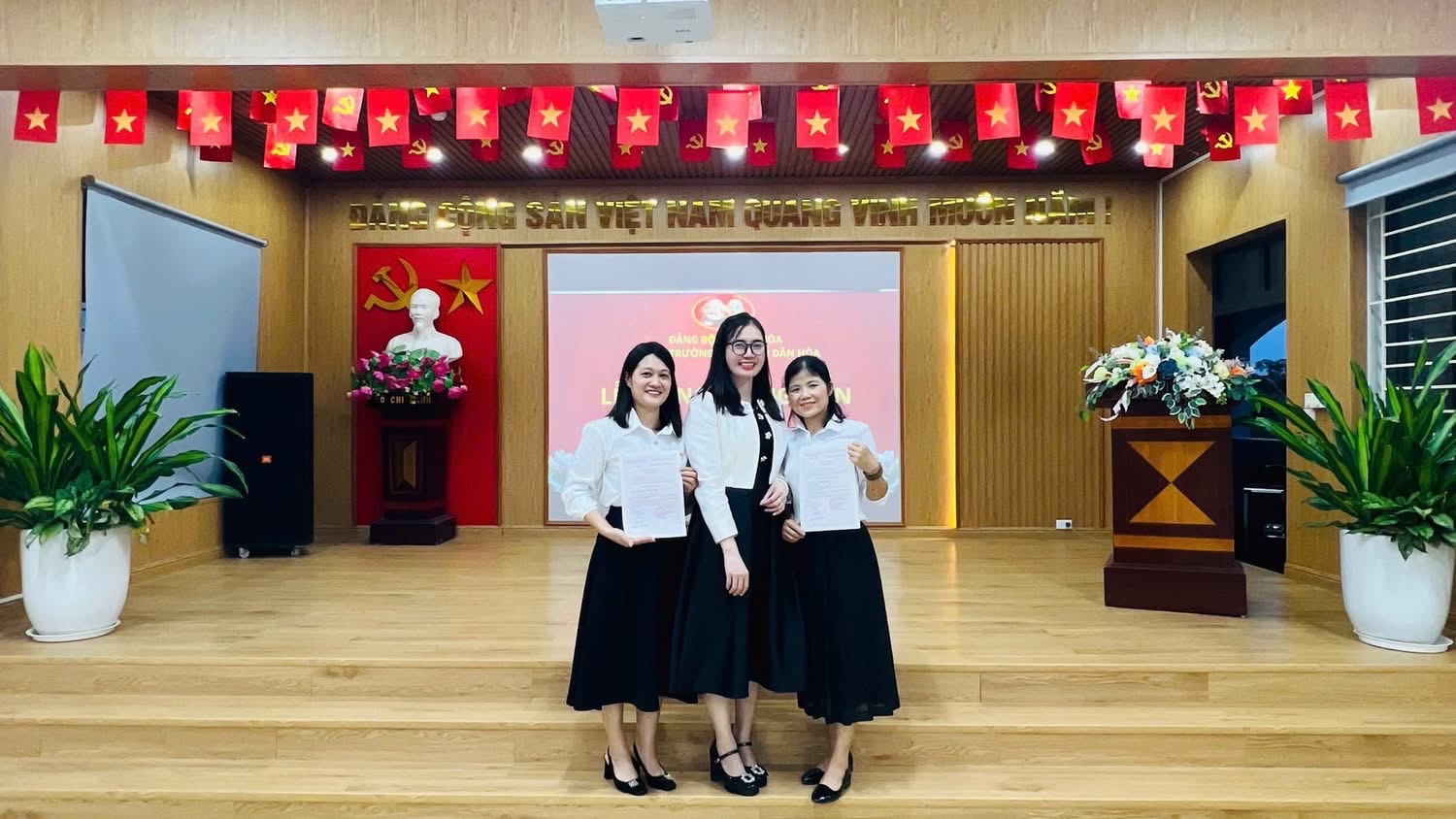 CHI BỘ TRƯỜNG MẦM NON DÂN HÒA TỔ CHỨC LỄ KẾT NẠP ĐẢNG VIÊN 2 ĐỒNG CHÍ TRẦN TUYẾN VÀ MAI THỊ THẢO.