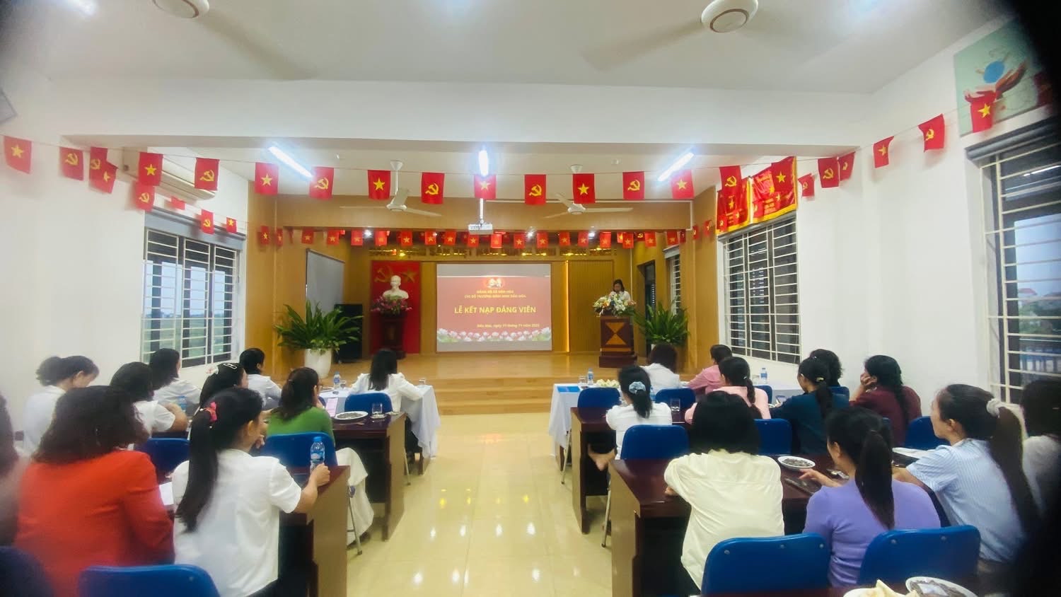 CHI BỘ TRƯỜNG MẦM NON DÂN HÒA TỔ CHỨC LỄ KẾT NẠP ĐẢNG VIÊN 2 ĐỒNG CHÍ TRẦN TUYẾN VÀ MAI...