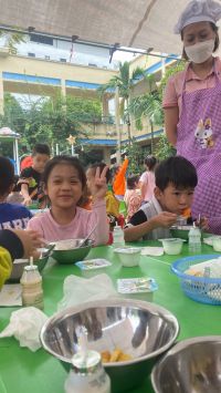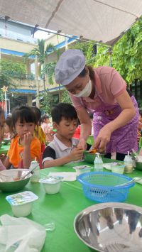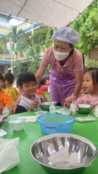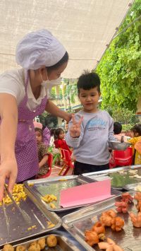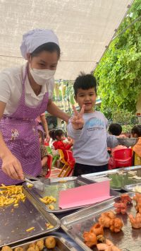 Sau thời gian dài nghỉ dịch các bé đã có thể đến trường tham gia các hoạt động và có bữa tiệc buffe thật là vui